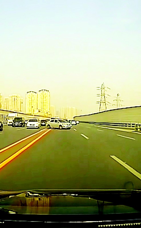 东联路双黄线掉头,直行车“吓一身汗”