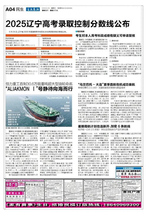 2025辽宁高考录取控制分数线公布